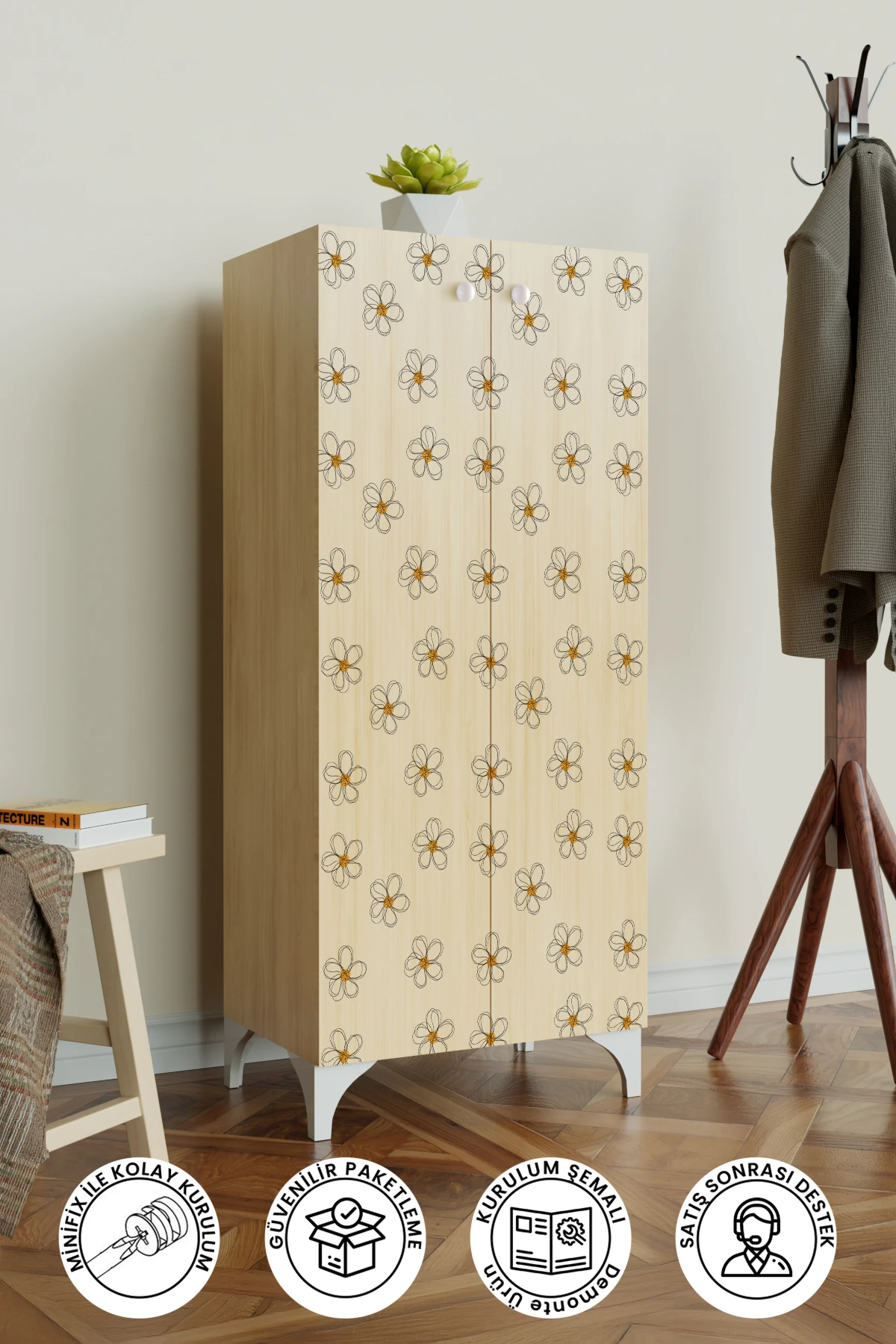 Abstract Flowers 3 Raflı Çok Amaçlı Dolap Mutfak Salon Banyo Ofis Salon Dolabı